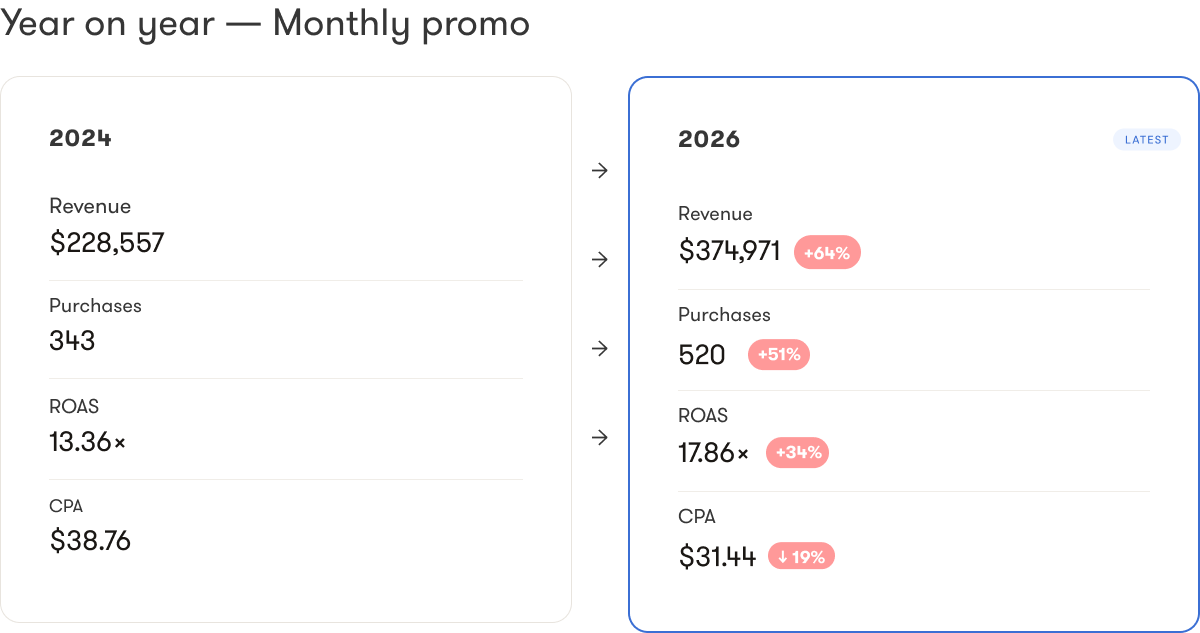 From $228k to $374k: How Rigorous Creative Testing Compounded Our Client's Promo Revenue